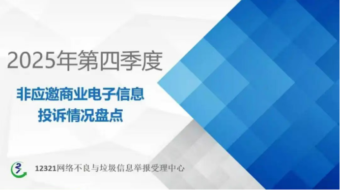 近日,12321网络不良与垃圾信息举报受理中心发布了2025年第四季度非应邀商业电子信息投诉情况。数据显示,欠款催收类短信占非应邀商业短信投诉九成多,金融类诉求也在商业电话投诉中位居前列,京东、美团等多家企业..