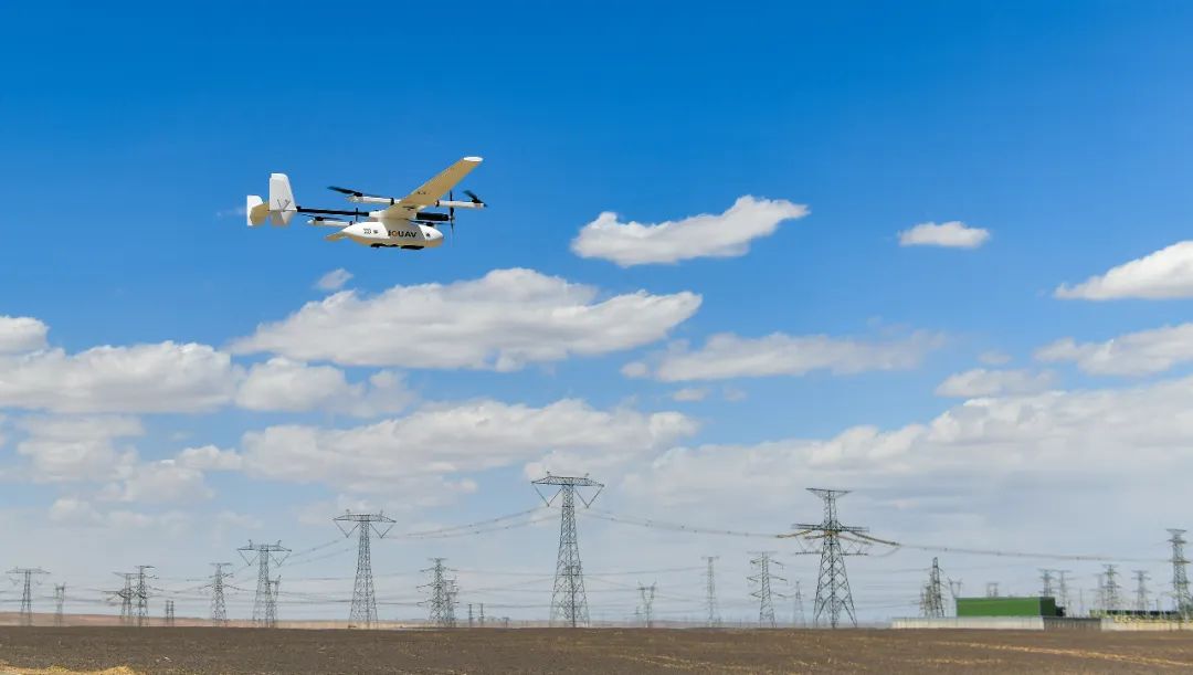 5月7日,由新疆联通公司提供的混合翼无人机为哈密±800千伏天山换流站综合检修提供空中巡检服务。