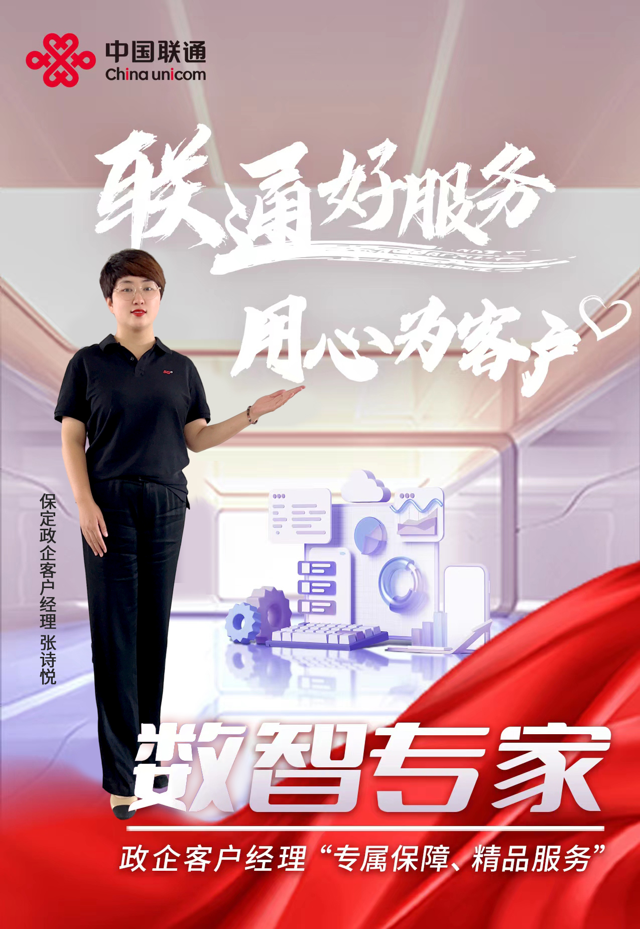 工联网消息(IItime) #联通好服务 用心为客户# 张诗悦,现为河北保定联通分公司的一名政企客户经理,自加入联通的15年来、从事政企客户通信服务工作的7年来,始终将客户满意作为奋斗目标,时刻将客户放在首位,想客户之所想,急客户之所急,用专业、细致的高品质服务赢得了客户们的一致信赖!
