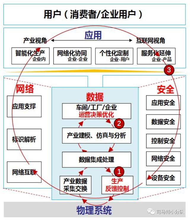 决策层体现在通过异构数据的整合和实时分析,帮助企业智能决策;运营层体现在通过企业内信息集成和企业间供应链的集成,帮助企业提高研发、管理、物流和供应链上的效率;生产模式上可以帮助企业实现智能装备、智能产线、智能车间和智能工厂,提高产能,缩减人工和管理成本;商业模式上可以支撑企业开发互联的智能产品和服务。